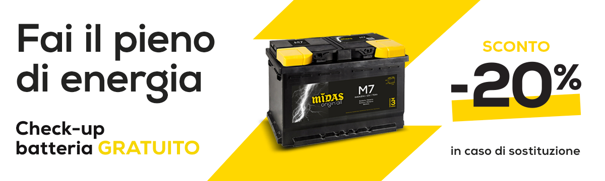 Esclusiva web valida dal 01/10/22 al 31/10/22: check-up gratuito batteria & -20% di sconto sull'acquisto di una nuova batteria Midas.